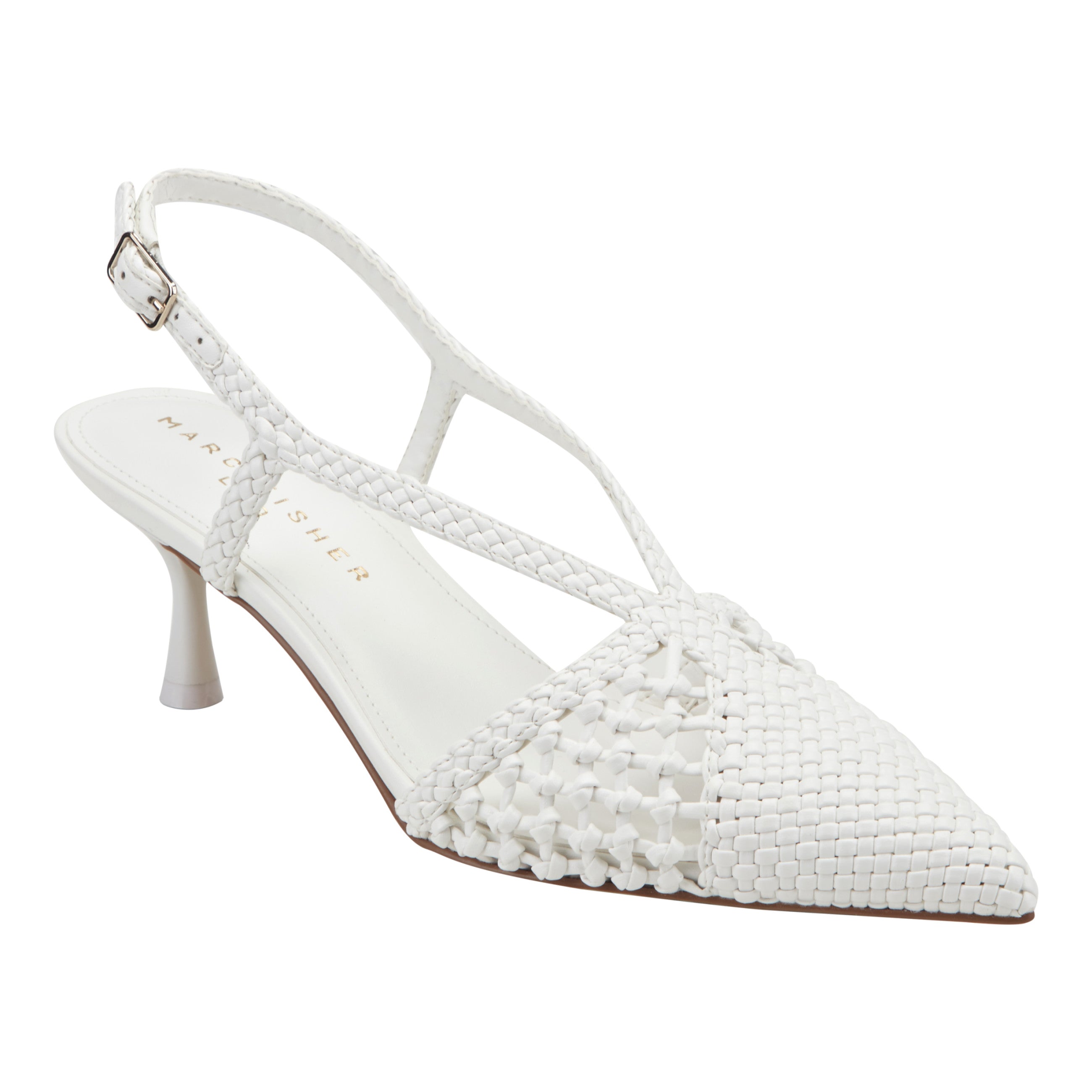 Upgrade your wardrobe in the Marc Fisher LTD Reagan dress pumps. Featuring an adjustable ankle strap, a tapered heel and woven detailing. This pump is the perfect wardrobe staple!