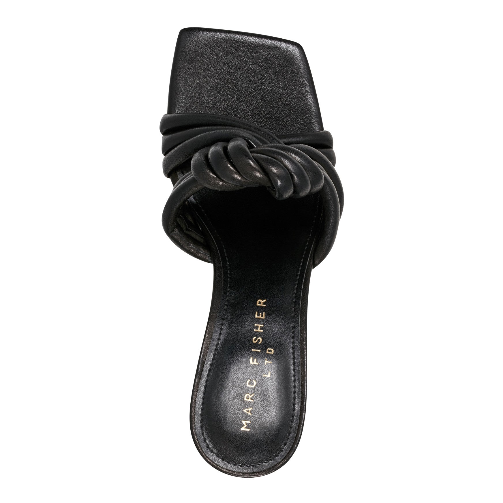 Knotted mules with a sculptural spool heel: the Dru is polished, bold, and built for repeat wear. Soft leather straps twist into a knotted detail over a clean square toe, giving this slide its graphic edge.