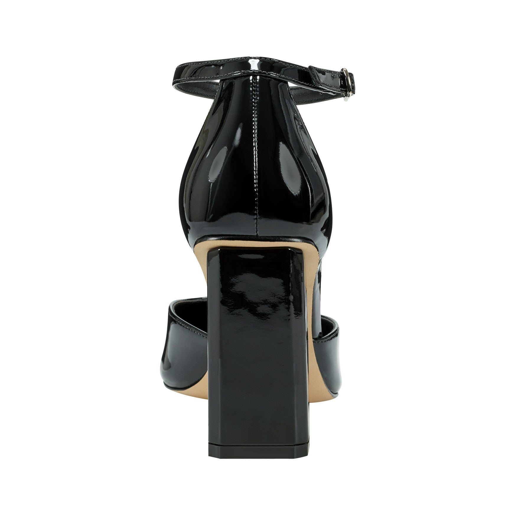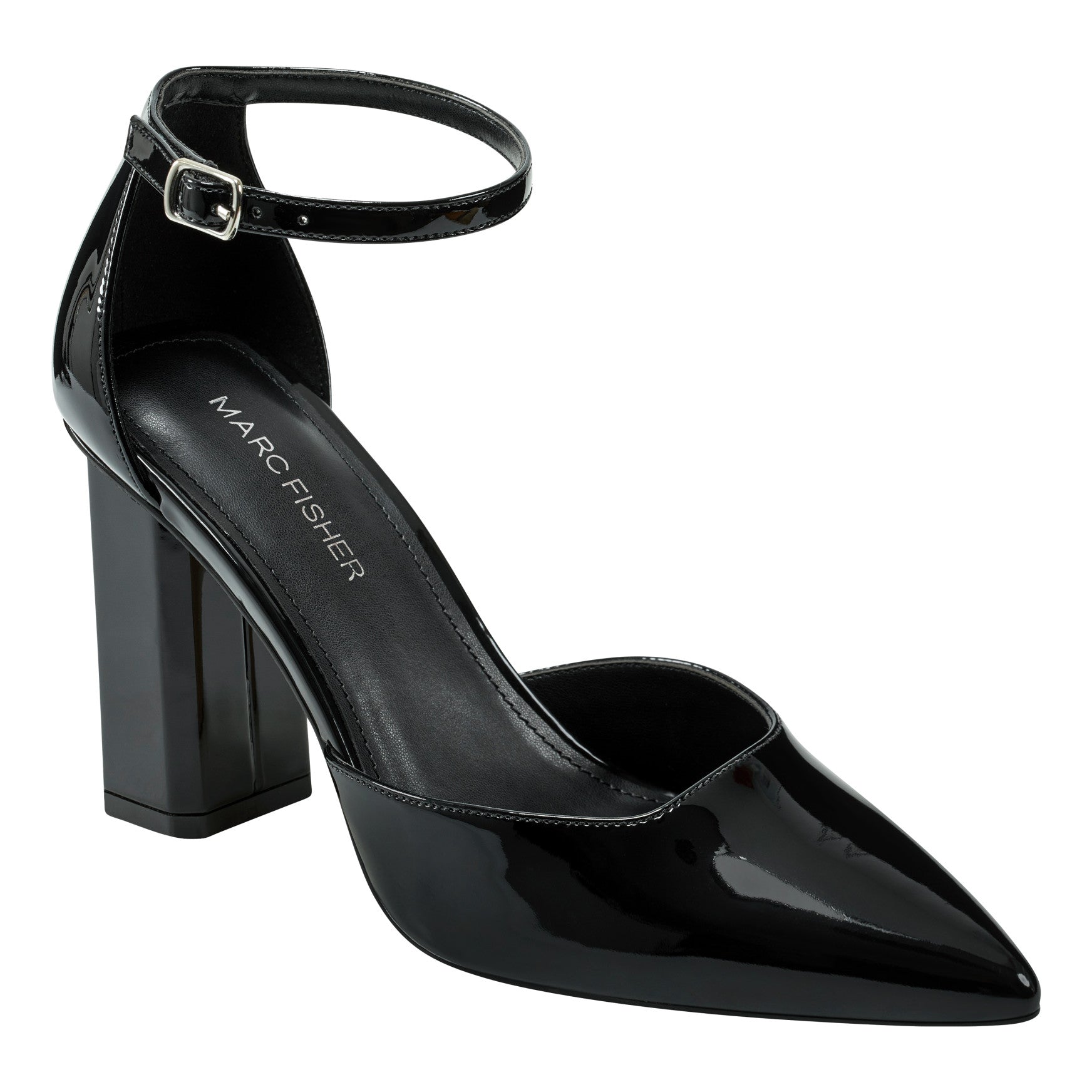 Block heels with a pointed toe are the sharpest way to do evening. The Demeter delivers with a d'Orsay silhouette, slim ankle strap, and a high-shine finish that feels bold and polished.